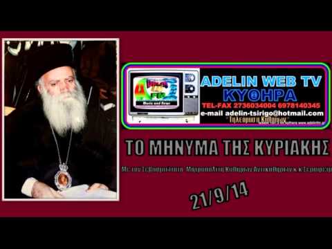 Το μήνυμα της Κυριακής από το Σεβασμιώτατο Μητροπολίτη Κυθήρων & Αντικυθήρων κ. Σεραφείμ, 21/9/2014