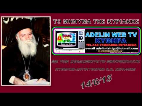 Το μήνυμα της Κυριακής από το Σεβασμιώτατο Μητροπολίτη Κυθήρων & Αντικυθήρων κ. Σεραφείμ, 14/6/2015